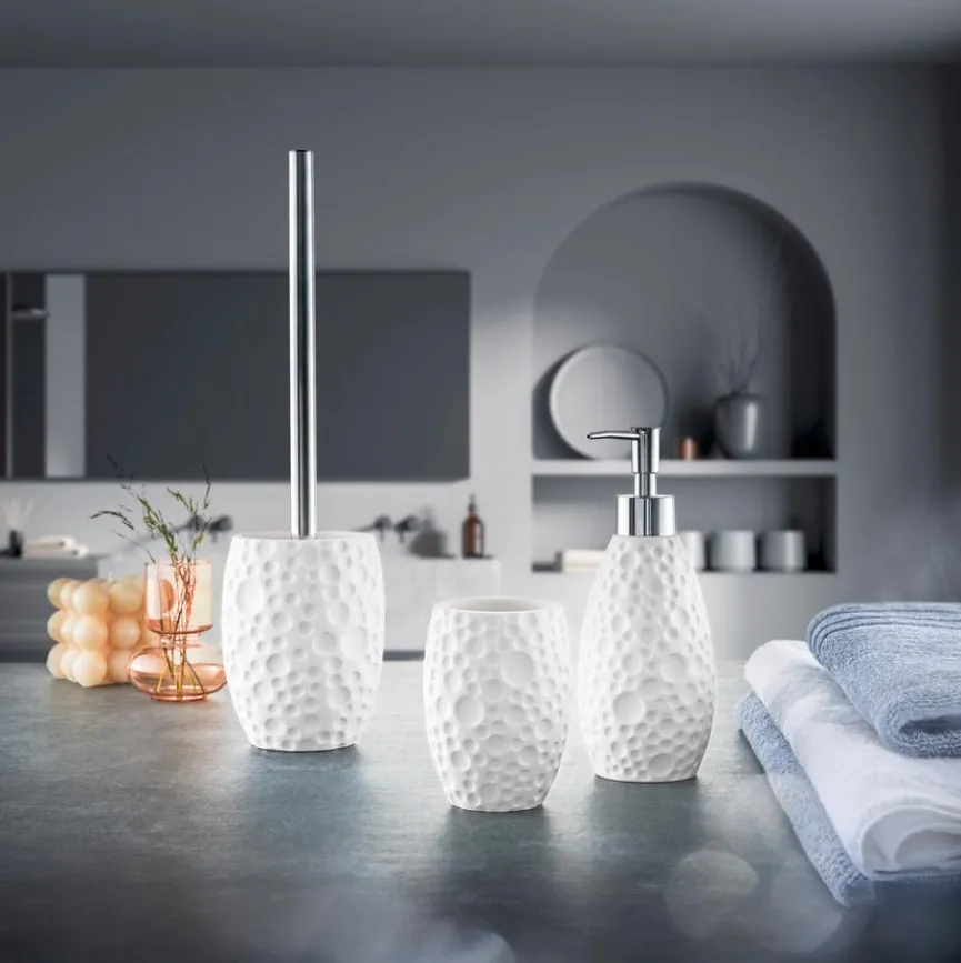 Für die hygienische Aufbewahrung von Zahnbürsten eignet sich der aparte Zahnputzbecher Moon von Kleine Wolke optimal. Die kraterähnlich gestaltete Oberfläche des hochwertigen, originellen Behältnisses sorgt für dekorative Effekte und für eine interessante Haptik. Außerdem passt der unifarbene Zahnputzbecher Moon zu beinahe jedem Badezimmerdesign.