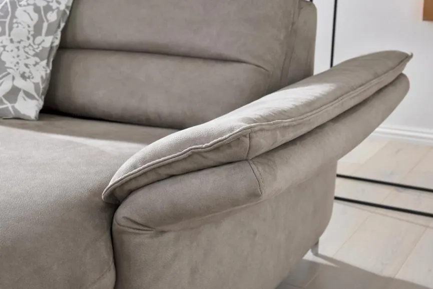 - Bezug aus Mikrofaser (BeReal) in stone, Füße Aluminium poliert