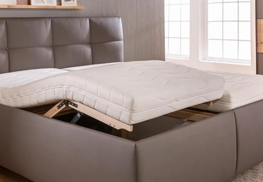 - Mit 2x Lattenroste 90 x 200 cm, stufenlose motorische Kopf- und Fußteilverstellung, mit Bettkastenfunktion