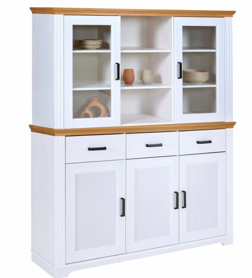 Hochwertiges Design im beliebten Landhausstil zeichnet das Buffet Malnuno aus dem Hause Inter Link aus. Dieser großzügige Buffetschrank bietet hinter blickdichten Türen, in offenen Fächern und geräumigen Schubladen viel Platz, in dem Sie Geschirr, Gläser und andere Haushaltsutensilien verwahren können. Mit seinem klassischen Look bezaubert das Buffet Malnuno in der Küche oder im Ess- oder Wohnzimmer und wertet Ihr Ambiente durch Stil und Ordnung auf.