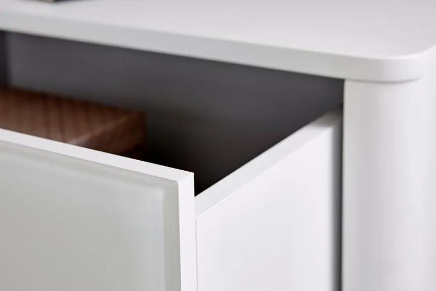 - Aus Spanplatte mit hochwertiger Dekorfolie in Mattlack weiß