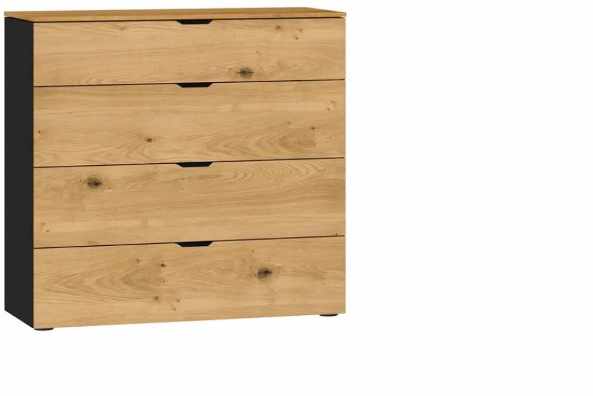 Mit der Kommode Beimöbelprogramm sorgen Sie ganz leicht für Ordnung in Ihren vier Wänden. Ob im Schlafzimmer, Wohnbereich oder im Flur – dieses attraktive Möbelstück macht überall eine gute Figur. Vier Schubkästen sorgen für reichlich Platz, die hochwertige Melaminharzfolie gewährleistet Langlebigkeit.