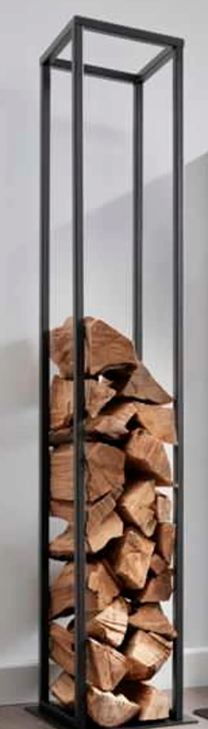 Der Kaminholzständer Thomas zeigt sich in einem klaren Look mit einer modernen Note. In dem schicken Brennholzregal können Sie wunderbar Ihr benötigtes Heizmaterial für gemütliche Abende vor dem knisternden Kaminfeuer stapeln. Auch durch seine platzsparende hohe Formgebung begeistert der praktische Kaminholzständer Thomas.