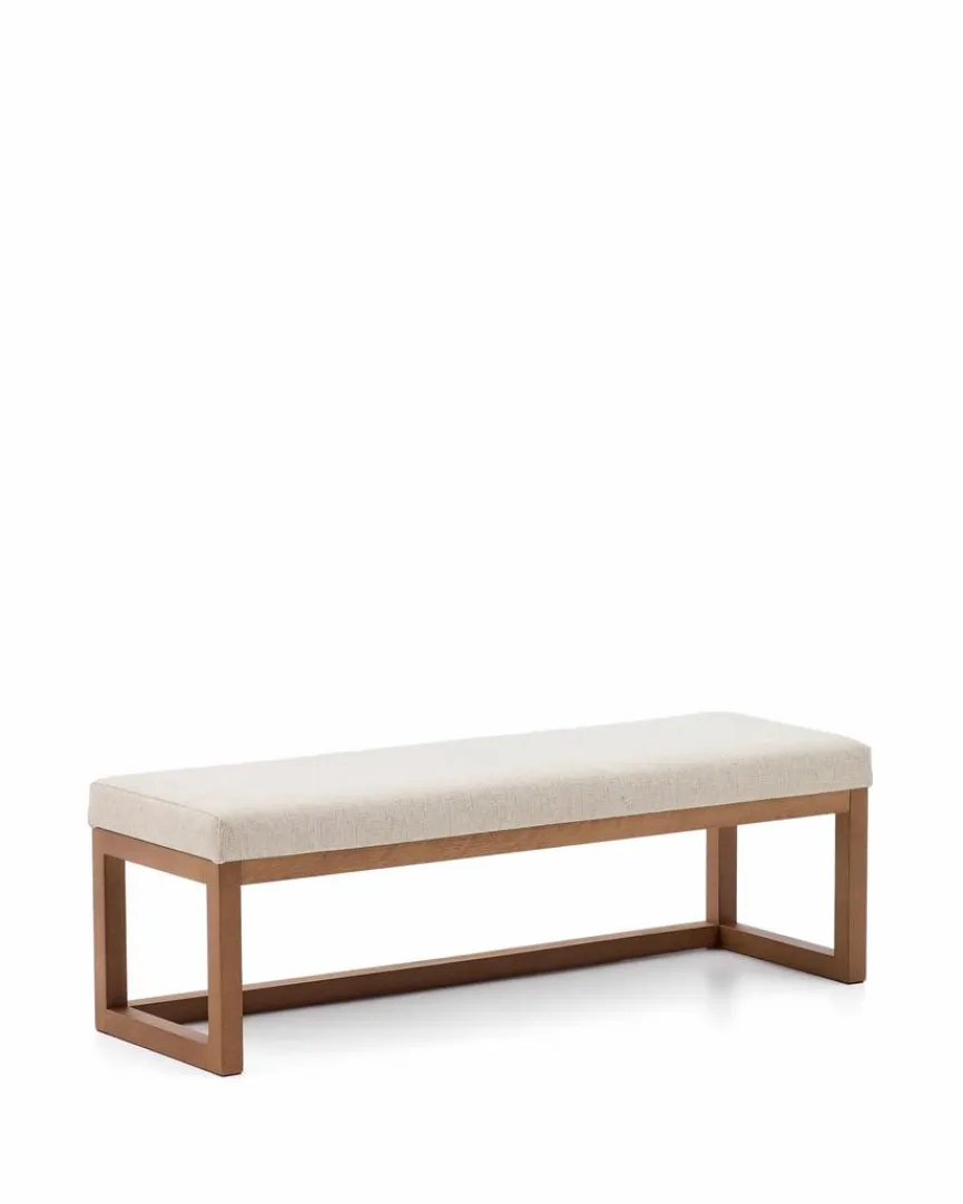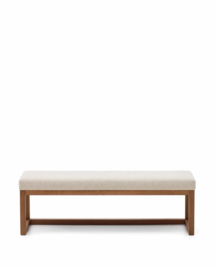 Die angenehm gepolsterte Bank Loya von Kave Home punktet mit ihrem puristischen, funktionalen Design, das sich mühelos in verschiedenste Einrichtungsstile integrieren lässt. Ob im Eingangsbereich, im Wohn- oder im Schlafzimmer, die hochwertig gearbeitete Sitzbank lädt zum Platznehmen ein. Auf ihrer Unterseite ist die robuste Bank Loya mit einem Filzschutz ausgestattet, der den Fußboden schont.