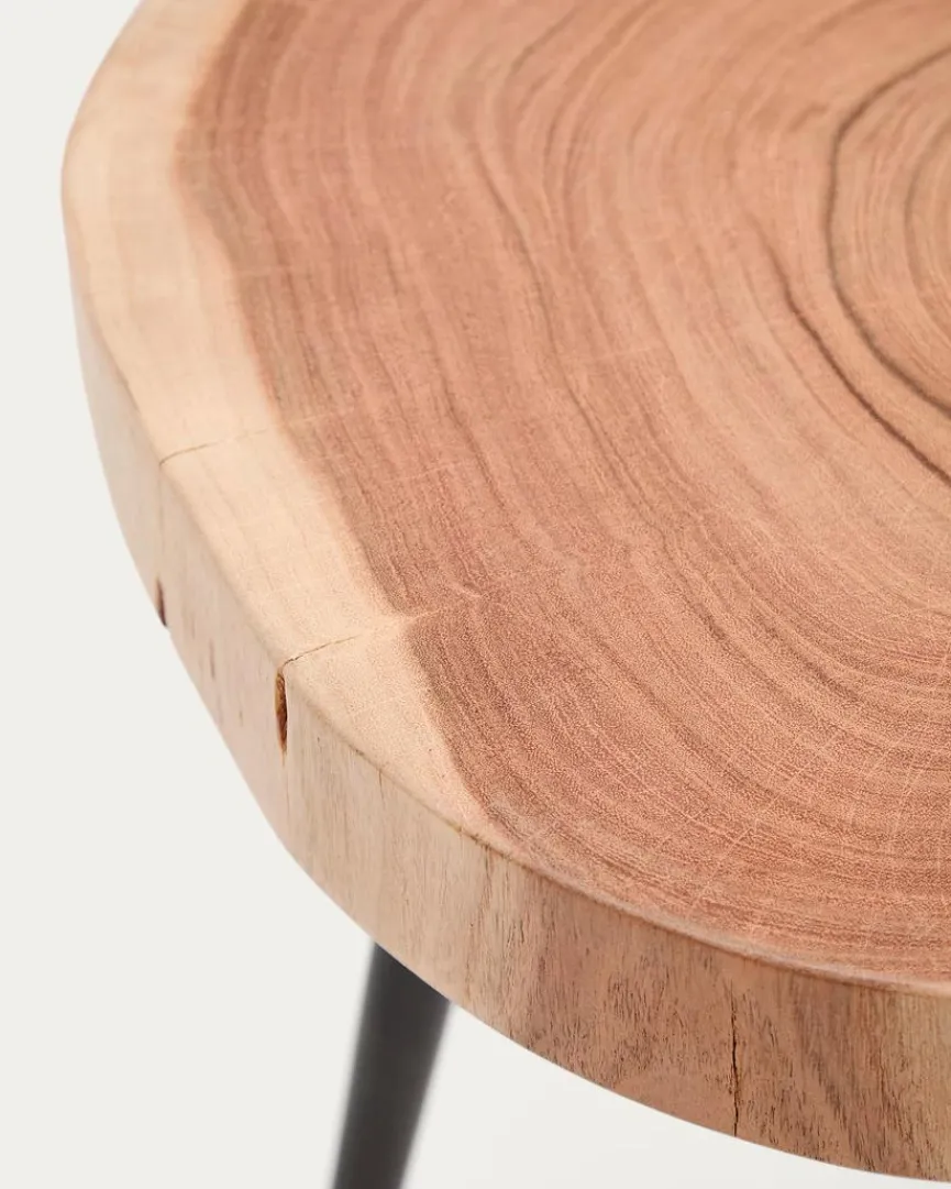 Der Beistelltisch Tanive von Kave Home ist ein zeitgemäßes Wohnaccessoire, das Natur und Individualität verbindet. Seine Tischplatte besteht aus einer gebleichten Baumscheibe. Die individuelle Maserung und Beschaffenheit macht dieses hochwertige Möbelstück zum Unikat. Genießen Sie es, mit dem Beistelltisch Tanive stilvoll zu wohnen und auf ihm Snacks und Getränke abzustellen, während Sie es sich gemütlich machen.