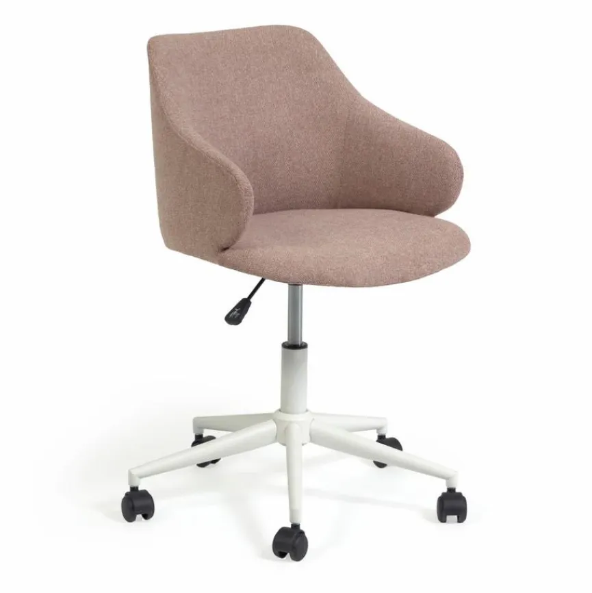 Der Drehstuhl Einara von Kave Home bietet Funktionalität und Chic. Eine Sitzschale, die mit einer ausgesprochen charmanten Formensprache die Blicke auf sich lenkt, prägt im Wesentlichen das Design dieses bequem gepolsterten Sitzmöbels. Dank der Rollen und der Höhenverstellung ist der mit Armlehnen versehene Drehstuhl Einara zudem wunderbar flexibel einsetzbar.