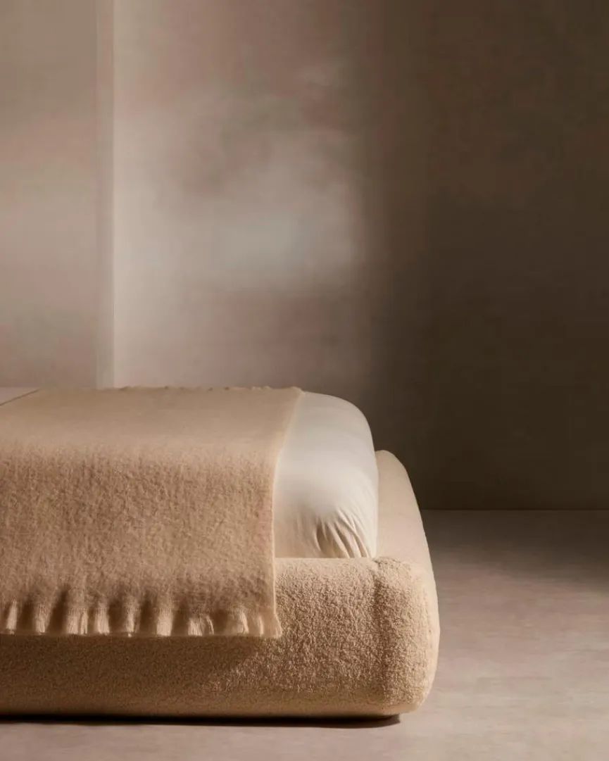 - Aus Holzwerkstoff mit abnehmbarem Bouclébezug in ecru