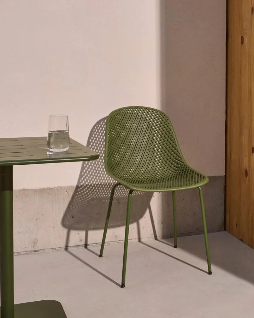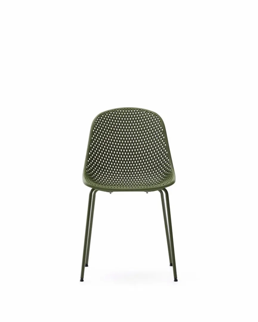 Dank seiner perforierten Sitzschale garantiert der Stuhl Quinbi von Kave Home ebenso gemütliche wie luftige Momente im Wohnbereich. Sein schlankes, dunkles und modernes Design überzeugt zudem auf ganzer Linie. Auch die variantenreichen Kombinationsmöglichkeiten erweisen sich als vorteilhaft, sobald Sie den Kave Home Stuhl Quinbi zur Einrichtung hinzuzufügen.