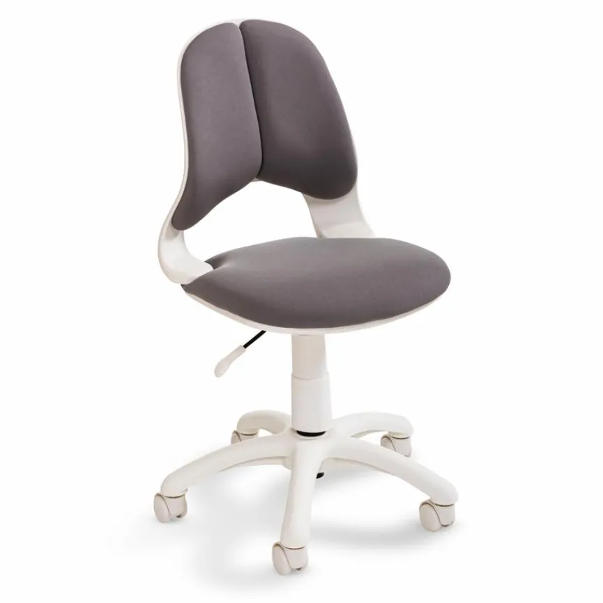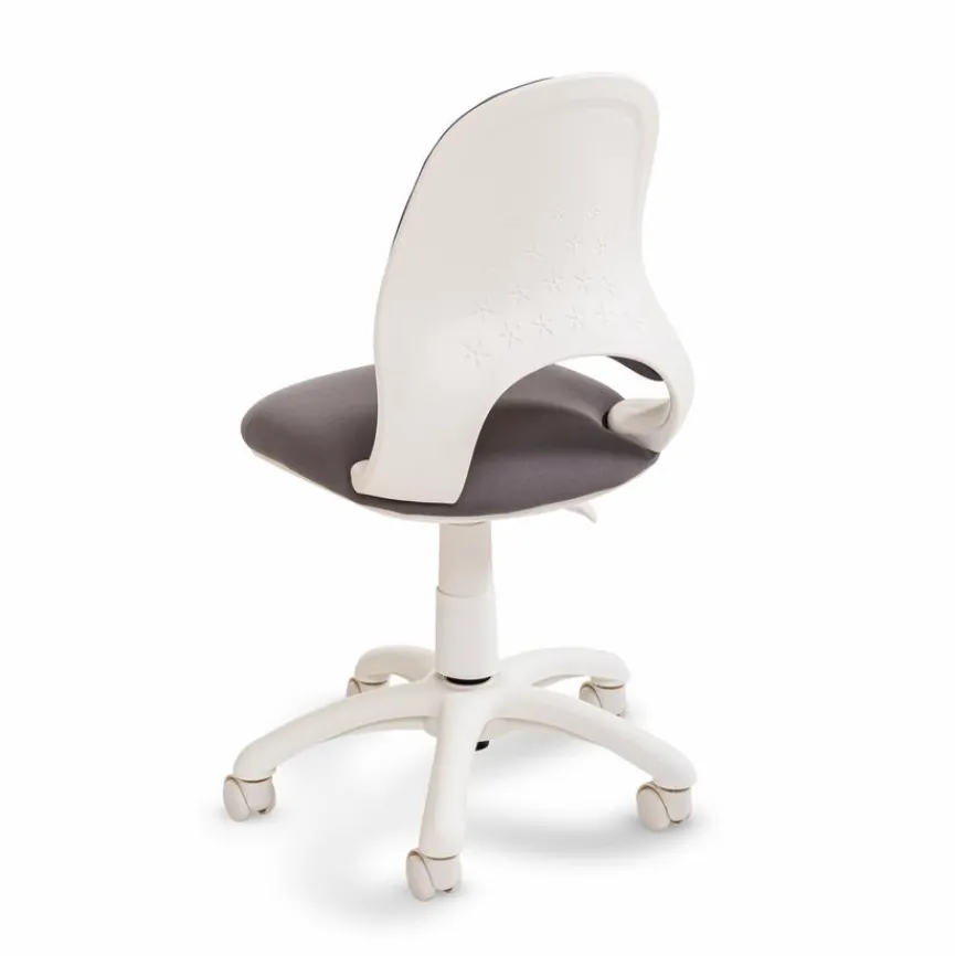 - Bezug aus Stoff in grau, Fußkreuz aus Kunststoff in weiß