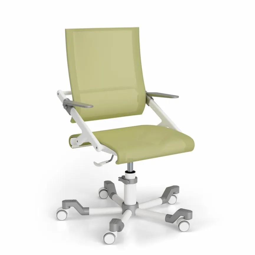 - Sitztiefe und Rückenlehne gemeinsam durch Positionierung der Armlehnen in 9 Stufen verstellbar