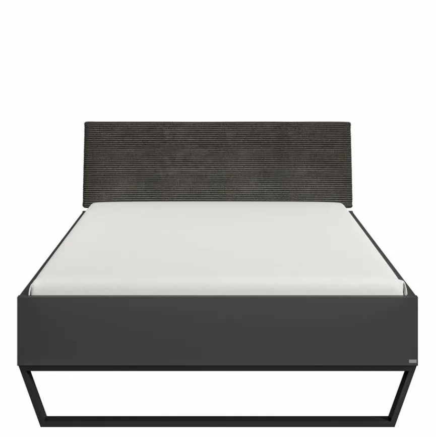 - Aus Holzwerkstoff (Spanplatte) mit kratzfester Melaminharzfolie in graphit matt, Kopfteilpolster mit Cord-Stoff in anthrazit, Fuß aus Metall in anthrazit