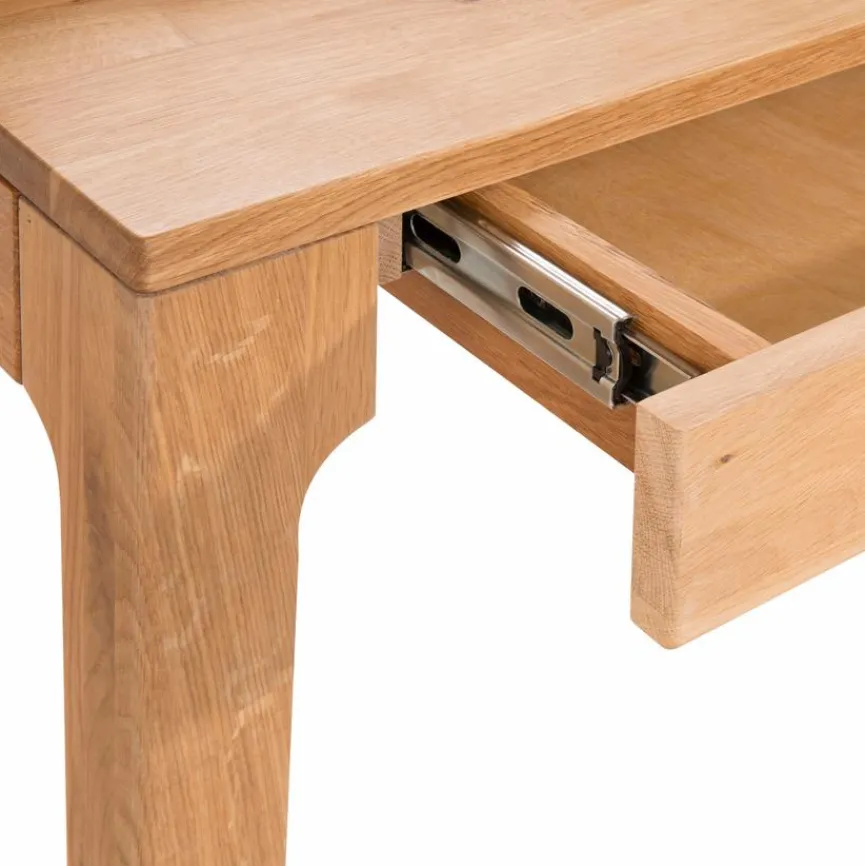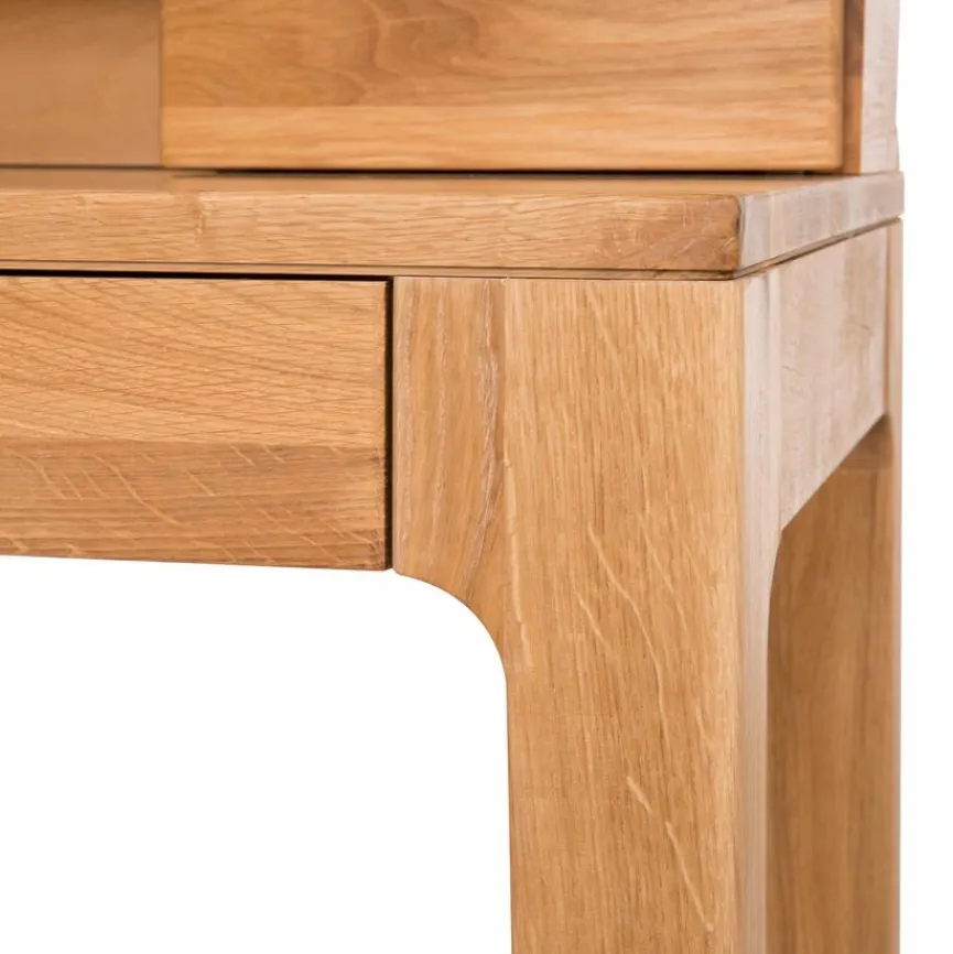 Zeitlos elegant: Der Schreibtisch Oskar begeistert durch sein puristisches Design. Aus massiver Wildeiche gefertigt ist der Tisch aber nicht nur ein optischer Hingucker, sondern überzeugt auch mit hoher Stabilität und natürlicher Robustheit. Zwei Schubladen mit Softclose bieten praktischen, aber unauffälligen Stauraum. Zudem verfügt der Schreibtisch Oskar über einen Aufsatz, der perfekt als Ablage genutzt werden kann.