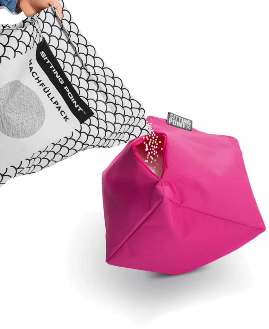 Das hier sind ca. 60 Liter EPS-Perlen aus 100% feinstem Polystyrol, die von Sitting Point sorgfältig in Deutschland für alle Arten von Sitzsäcken hergestellt wurden. Wenn die Packung leer ist, drehen Sie sie einfach um und benutzen Sie die Rückseite als super stylische Recycling-Aufbewahrungstüte für Geschenkpapier, Pfand oder Wäsche.