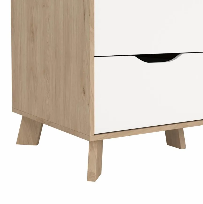 - Front aus Holzwerkstoff (Spanplatte) in Weiß, Korpus aus Holzwerkstoff (Spanplatte) in Jason Hickory Nachbildung, Fuß aus Holzwerkstoff (MDF) in Jason Hickory Nachbildung ummantelt