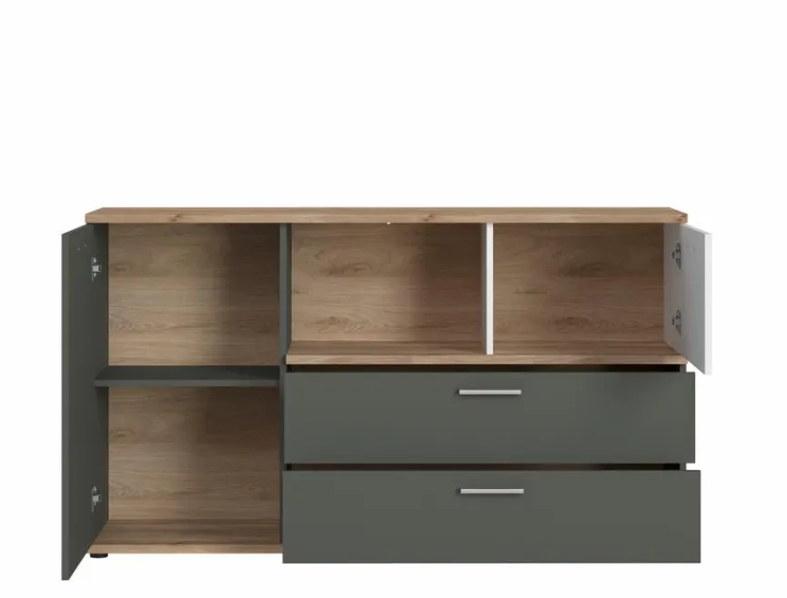 - Mit 2 Türen und 1 Einlegeboden, 2 Schubkästen und 1 offenes Fach