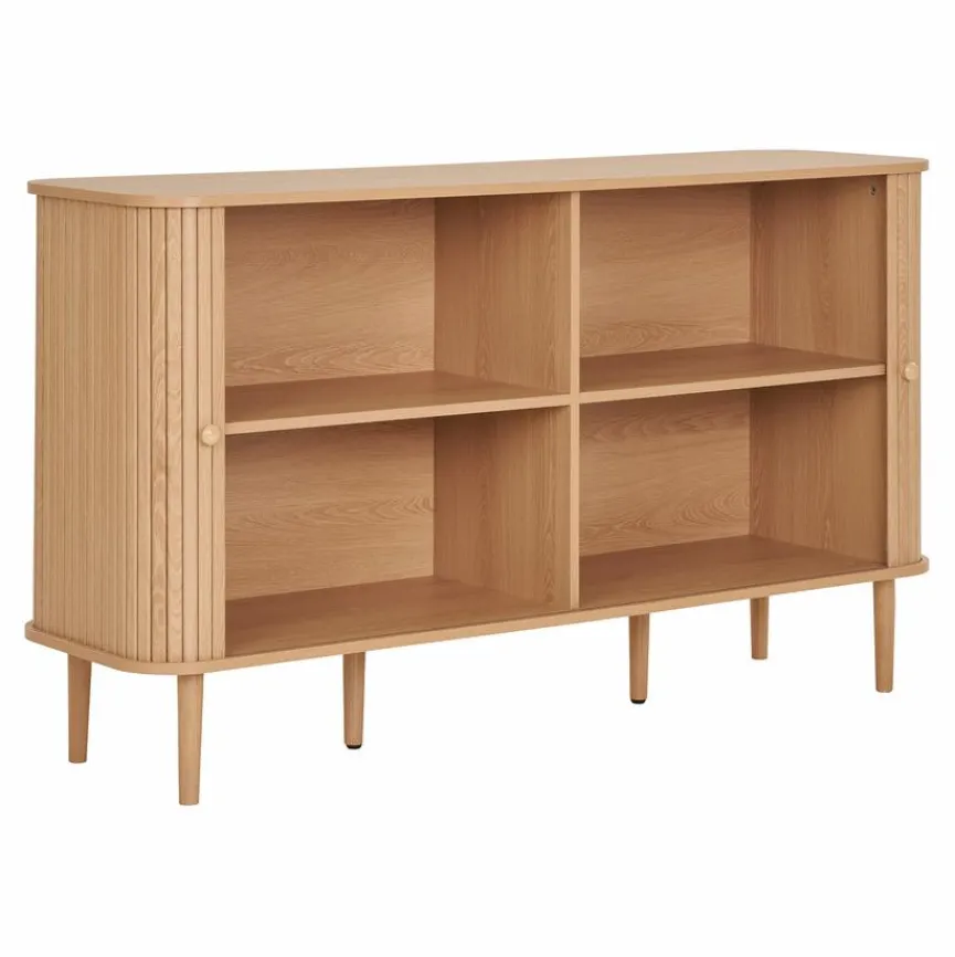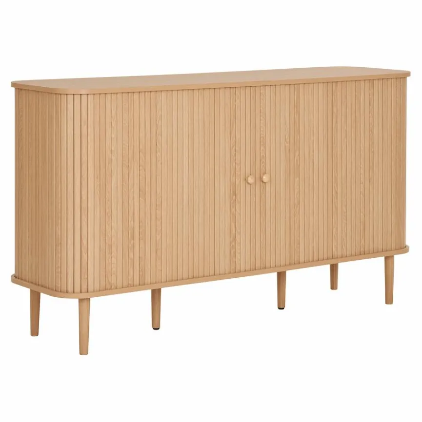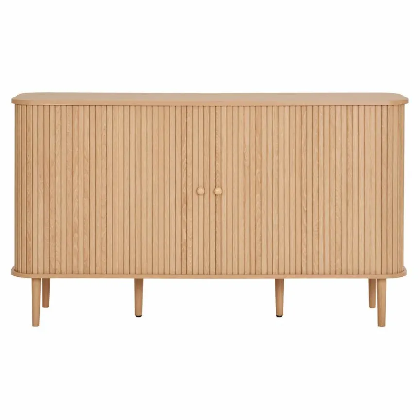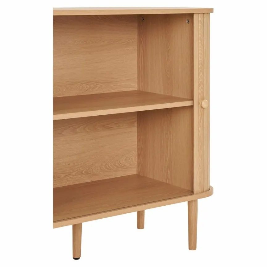 Die Kommode Nikko besticht mit ihrem auffälligen, ansprechenden Design, wodurch sie Ihren Wohnräumen ein ebenso angesagtes wie wertiges Flair verleiht. Dank der natürlichen Holzoptik passt sie außerdem in viele unterschiedliche Einrichtungskonzepte, wo sie sich mühelos integriert. Hinter zwei Türen bietet Ihnen die Kommode Nikko zusätzlich viel Stauraum für Nützliches und Liebgewonnenes.