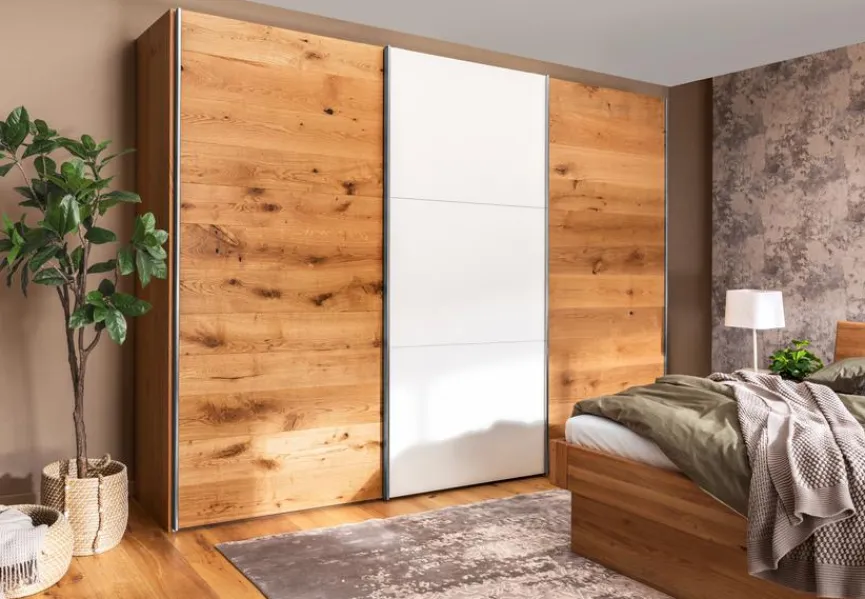 - Innenausstattung: 1 Fachboden und 1 Kleiderstange je Türenelement, inkl. Schließdämpfer-Set für Außentüren