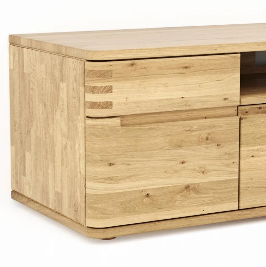 Egal, ob es um Ihren Smartfernseher, die Lautsprecher-Anlage oder eine Spielkonsole geht, das TV-Lowboard Indianapolis aus dem Hause MAISON bietet Ihren Entertainment-Geräten einen hervorragenden Platz. Der TV-Unterschrank hält zu diesem Zweck viel Stauraum in Fächern sowie Schüben und hinter Türen bereit. Zudem besticht das TV-Lowboard Indianapolis durch seine ansprechende Holzoptik.