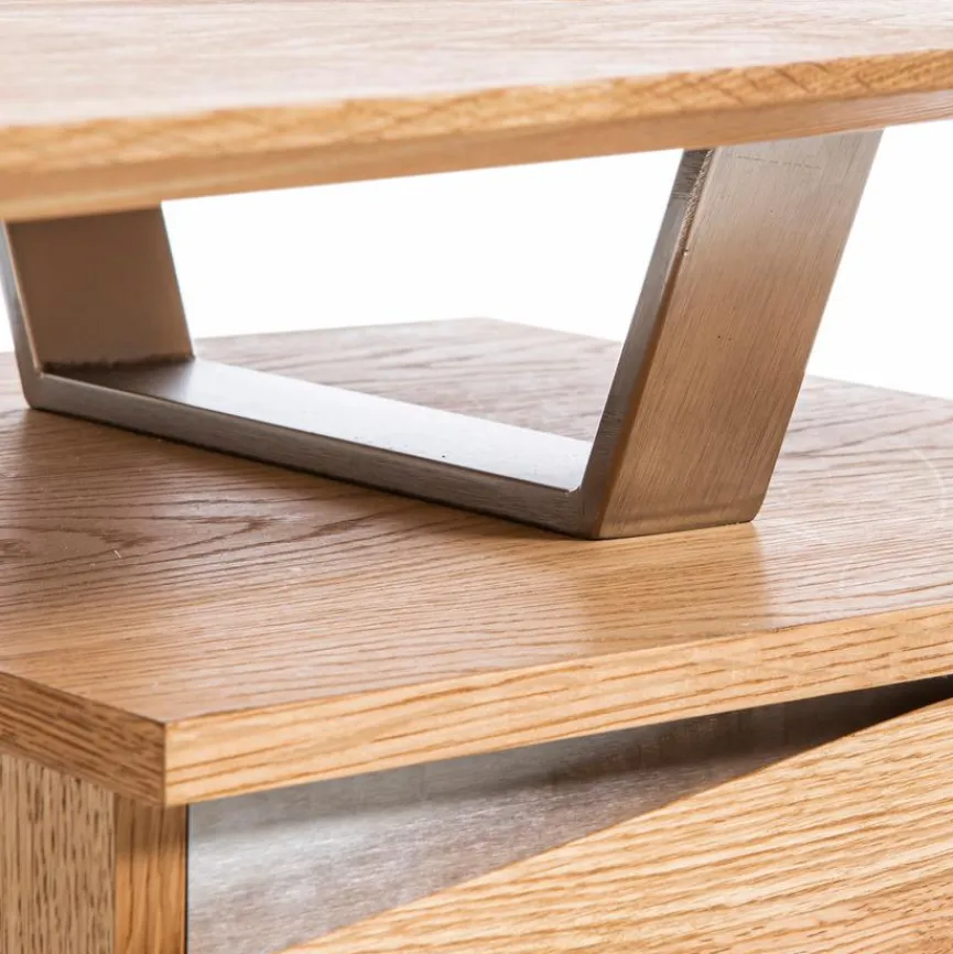 - Schreibtischplatte und Front des Containers aus massiver und geölter Asteiche, Containerkorpus aus Holzwerkstoff (MDF) mit hochwertiger Dekorfolie in Asteiche Nachbildung geölt, Gestell aus Metall in Edelstahloptik gebürstet
