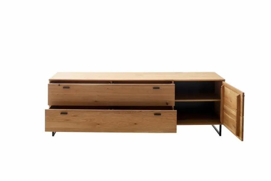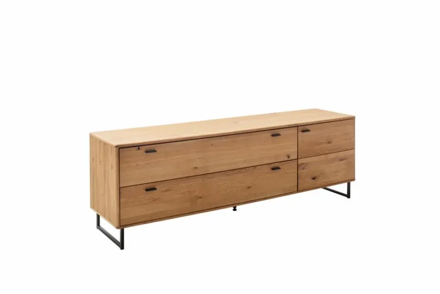 Mit einem Korpus und Fronten aus Ast-/Balkeneiche massiv und Wildeiche geölt bringt das TV-Element Arezzo von MCA natürliches Flair ins Wohnzimmer. Die großen Schubladen und die Fächer hinter den beiden Türen bieten ausreichend Stauraum für TV-Zubehör und Programmzeitschriften. Mit Füßen aus Metall hat das TV-Element Arezzo einen stabilen Stand.
