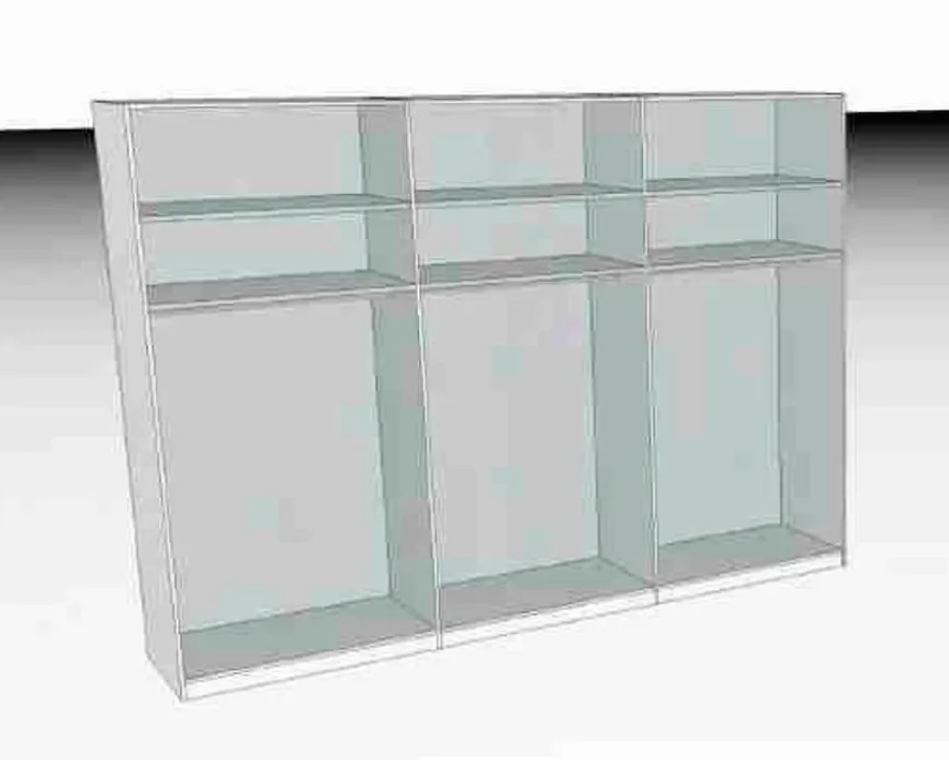 - Außentüren aus Glas in kieselgrau, Mitteltüren aus Glas in alpinweiß