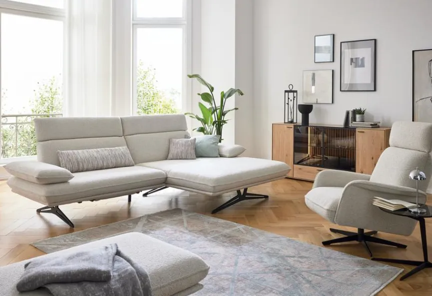 - Polsterung aus Polyschaum und Diolenwatte, Unterfederung durch dauerelastische Stahlwellenfedern