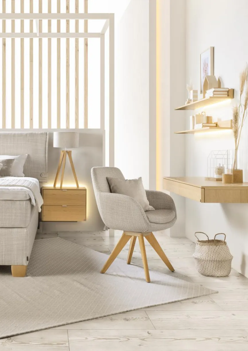 Der Stuhl Tavia von Musterring brilliert mit einer bequemen Sitzschale, die mit einer wunderbar fließenden Formensprache die Blicke auf sich zieht. Ein Mix aus Stoff und Holz verleiht dem Sitzmöbel zudem ein Äußeres, das viel Gemütlichkeit ausstrahlt. Zu Einrichtungsobjekten im Nordic-Stil passt der Stuhl Tavia beispielsweise sehr gut.