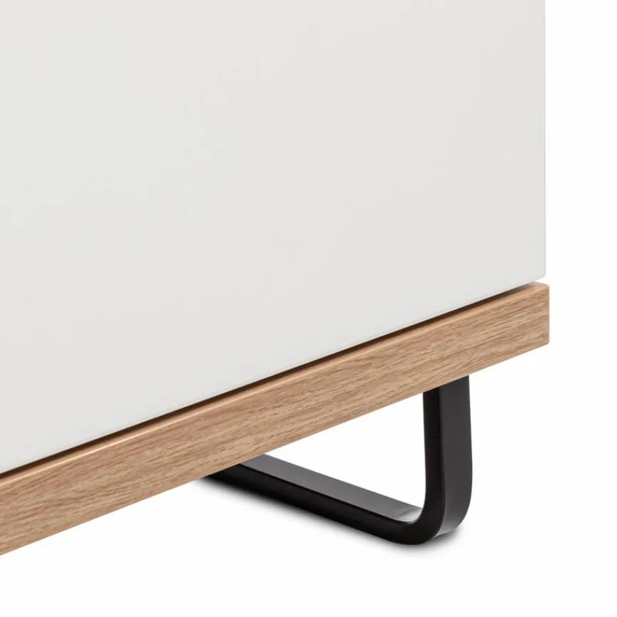 - Korpus und Front aus Holzwerkstoff (Spanplatte) mit kratzfester Melaminharzfolie in Polarweiß, Absetzung aus Holzwerkstoff (Spanplatte) mit kratzfester Melaminharzfolie in Artisan Eiche