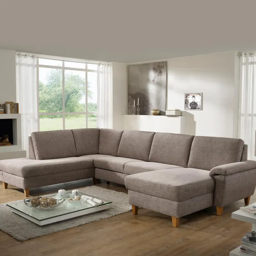 - Wohnlandschaft besteht aus Ottomane links (70213), 2,5-Sitzer ohne Armlehne (02002), Longchair mit Armteil (AT1) rechts (70103)