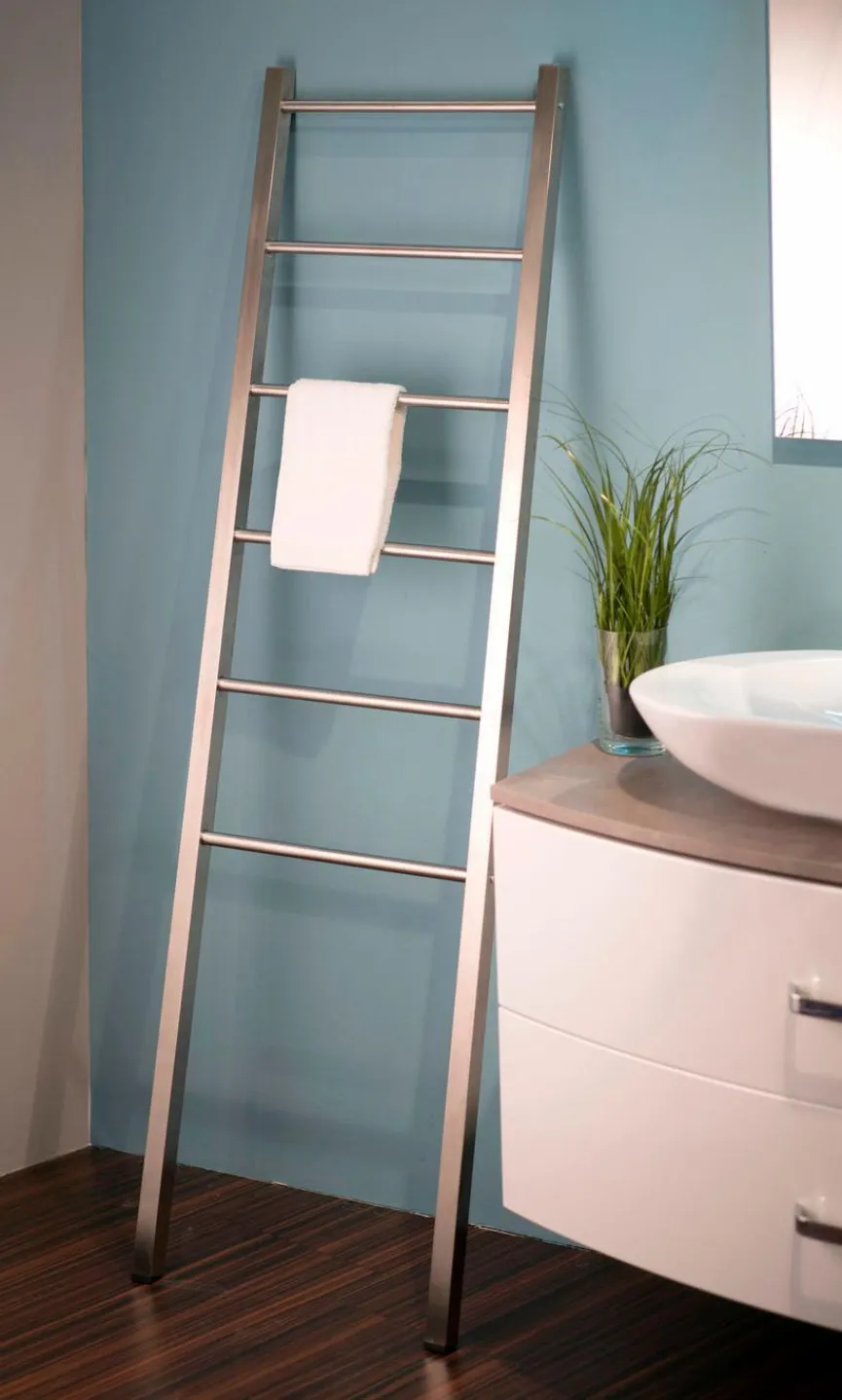 Mit der Handtuchleiter Ute sorgen Sie im Handumdrehen für Ordnung im Badezimmer. Die Dekoleiter findet selbst in kleinen Räumen ihren Platz und bietet ausreichend Ablagemöglichkeiten für Handtücher und andere Textilien. Verschönern Sie Ihr Bad mit der platzsparenden Handtuchleiter Ute und überzeugen Sie mit einer stilvollen Einrichtung.