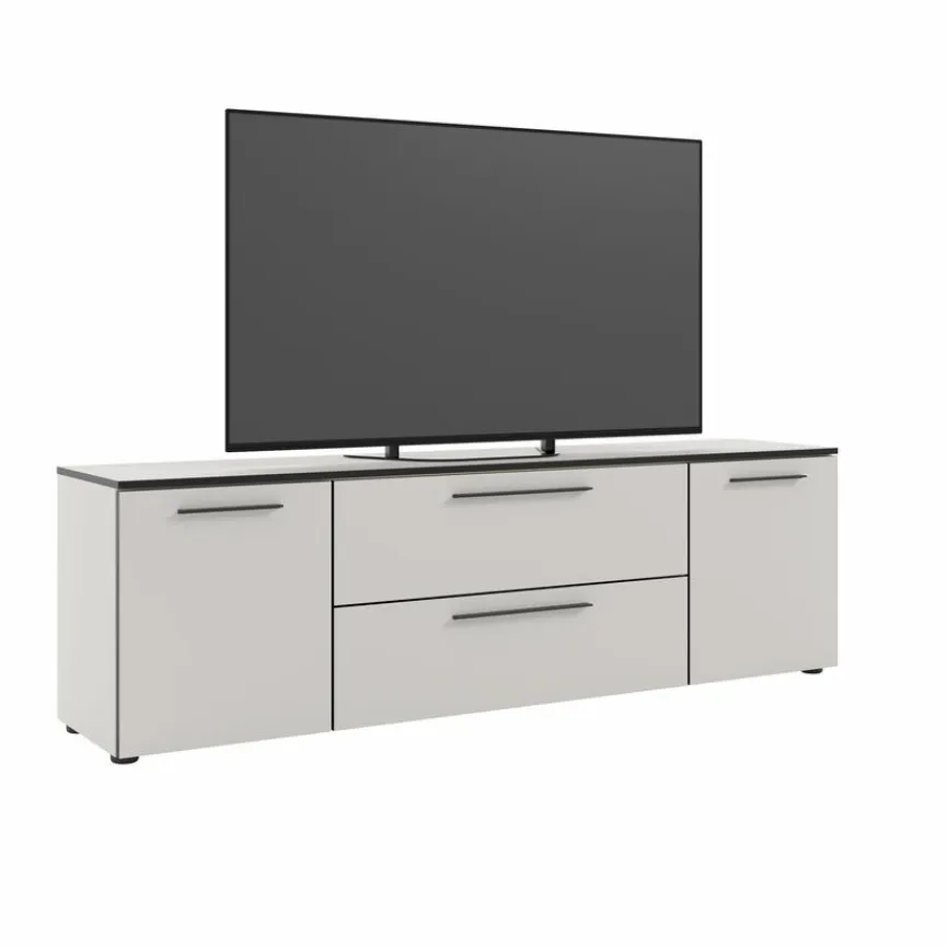 Das Lowboard Soul bietet hinter zwei Türen, einem Schubkasten und einer Klappe nützlichen Stauraum für Multimedia-Zubehör und andere Gegenstände. Seine Oberfläche hält Platz für den Fernseher bereit. Vier verstellbare Bodengleiter geben dem Lowboard Soul einen kippsicheren Stand. Das Sideboard ist mit schlanken Metallgriffen in horizontaler Ausrichtung ausgestattet, die das Öffnen der Fächer und Türen erleichtern.