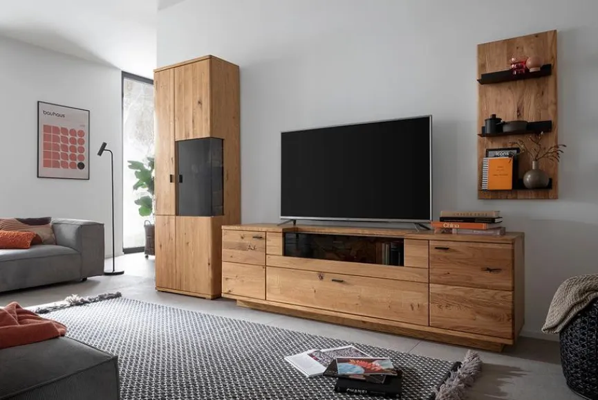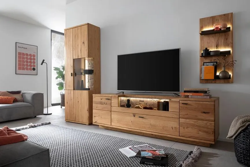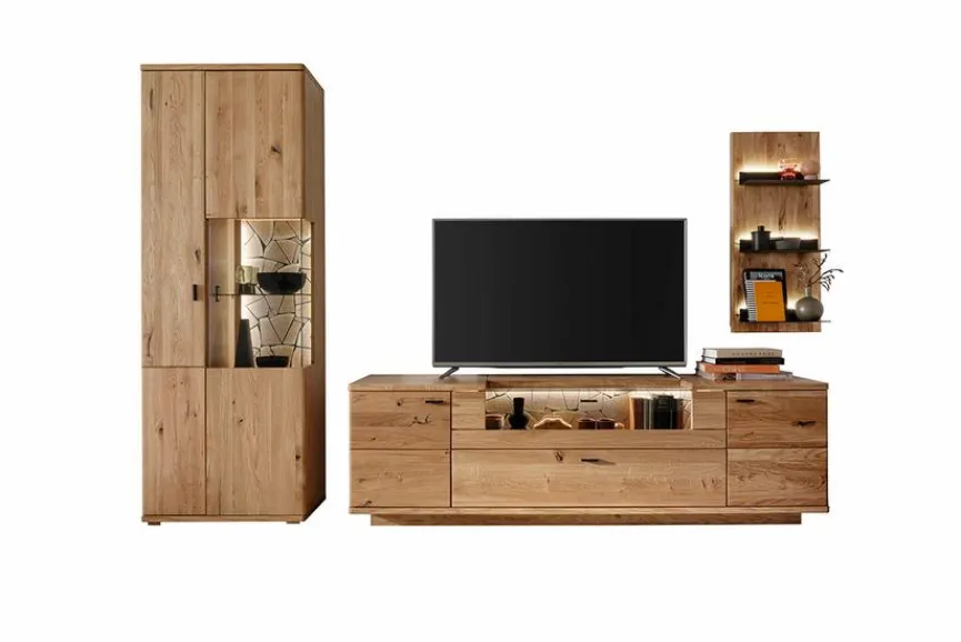 - Wohnwand aus Vitrine, TV-Lowboard, Wandboard