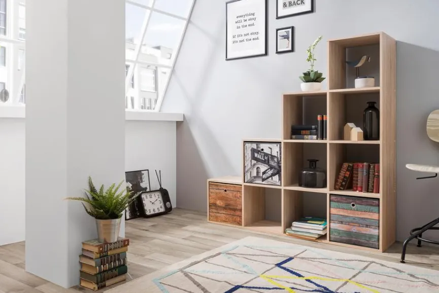 Das Regal Udine ist die ideale Wahl für alle, die eine Stauraumlösung für schräge Wände suchen. In vier Stufen angeordnet bieten 10 Ablagefächer reichlich Platz für Ordner, Bücher, Dekorationen und vieles mehr. Dank seines schlichten Designs eignet sich das Wandregal Udine sowohl für privat als auch gewerblich genutzte Räume.