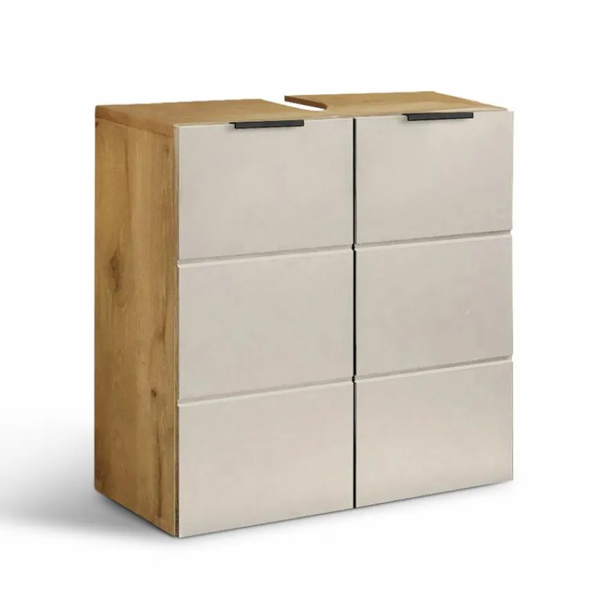 Der Waschbeckenunterschrank Kreta überzeugt mit seinem modernen, geradlinigen Design, wodurch er sich mühelos zu unterschiedlichen Einrichtungsstilen kombinieren lässt. Hinter Zwei Türen finden Sie ausreichen Stauraum für Handtücher, Hygieneartikel oder elektronische Geräte, die hier ihren festen Platz bekommen. Besonders schön wirkt der Waschbeckenunterschrank Kreta auch zum angesagten Skandi-Stil, wo er sich mühelos integriert.