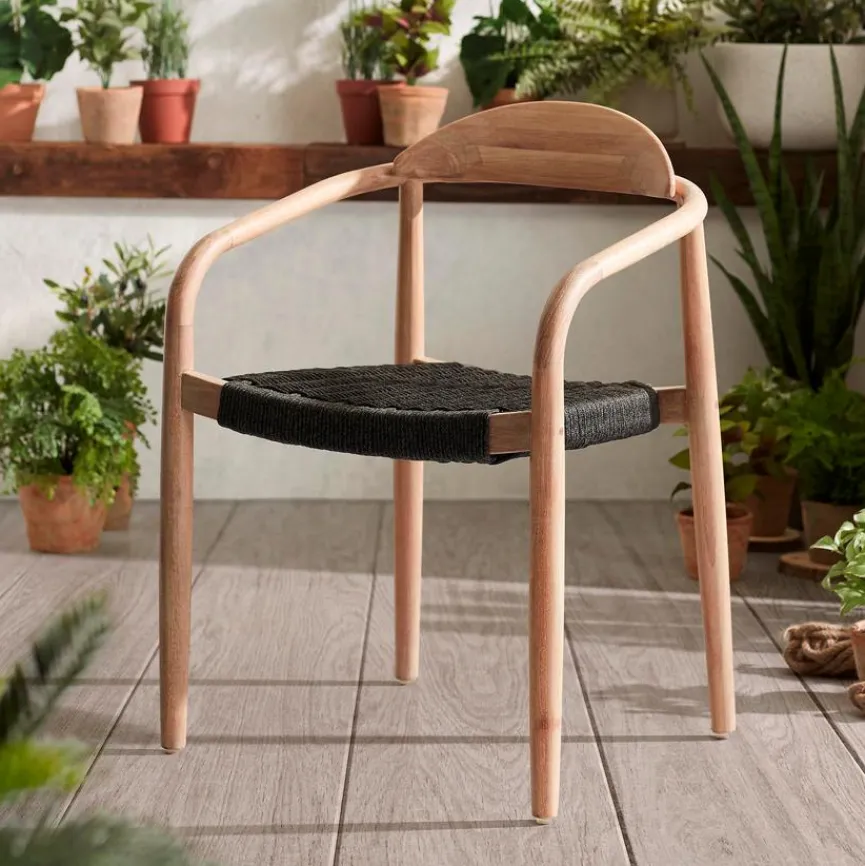 - Sitzfläche aus handgeflochtenem Seil in schwarz