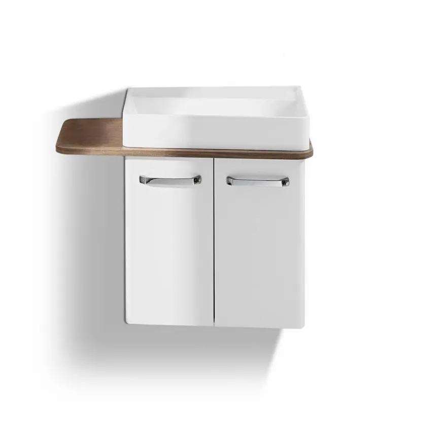 Mit seinem Mineralmarmor-Becken und den chromglänzenden Türgriffen wirkt der Waschtischunterschrank 6905 von Pelipal ausgesprochen stilvoll. Hinter den beiden Drehtüren des Badezimmerschrankes finden Sie viel Stauraum und die seitlich über das Becken hinausragende Waschtischplatte stellt eine praktische Abstellmöglichkeit für Zahnputzbecher und weitere Utensilien dar. Der Waschtischunterschrank 6905 lässt sich bestens mit weiteren Badmöbeln aus der Kollektion von Pelipal kombinieren.