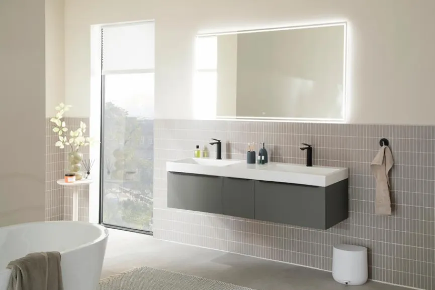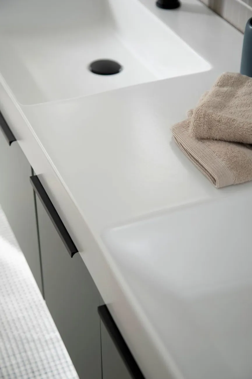 - Mit Keramik-Doppelwaschtisch WTM 535D 41, Q!flat Weiß Matt, inklusive 2 Clou Ab- und Überlaufsystem in Chrom