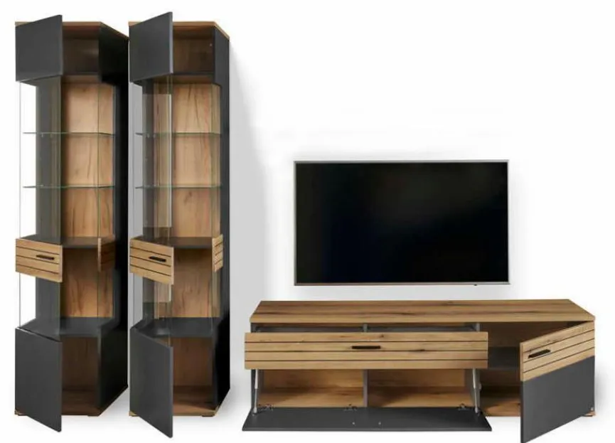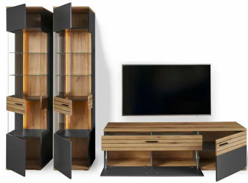 - Bestehend aus 2x Vitrine und 1x TV-Lowboard