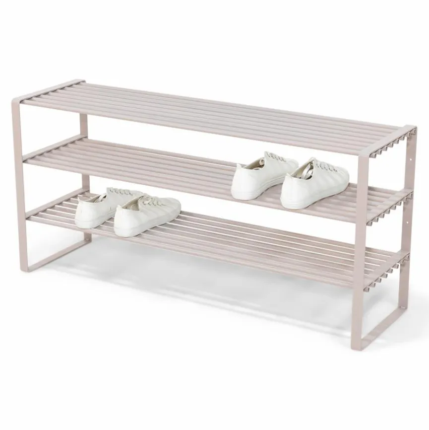 In dem mehrstöckigen Schuhregal Rex von Spinder Design finden die Alltagsschuhe Ihrer gesamten Familie Platz. Sie erhalten quasi drei Schuhregale in einem. Dank der geraden Ablageflächen ist das Regal perfekt zum Beispiel für Sneakers, Halb- und Sportschuhe geeignet. Platzieren Sie das Schuhregal Rex in Ihrem Treppenhaus oder im Innenflur.