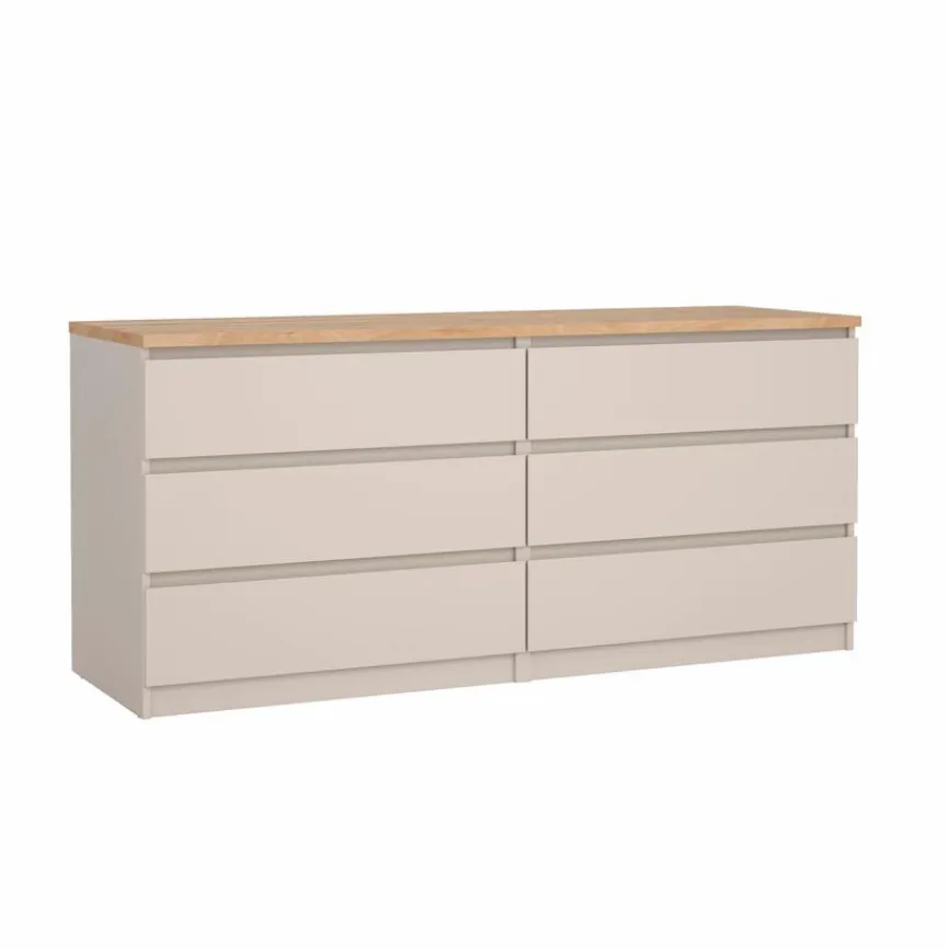 Die Kommode Naia von Tvilum überzeugt mit ihrem schnörkellosen Design, welches hervorragend zu trendbewussten, jungen Einrichtungsstilen passt. Mit sechs großzügigen Schubkästen bietet sie Ihnen viel Platz für Nützliches und Liebgewonnenes, sodass hier alles einen festen Ort zugewiesen bekommt. Außerdem lässt sich Deckplatte der Kommode Naia vielseitig mit Spiegeln, Dekorationen, Technik oder Lampen schmücken.