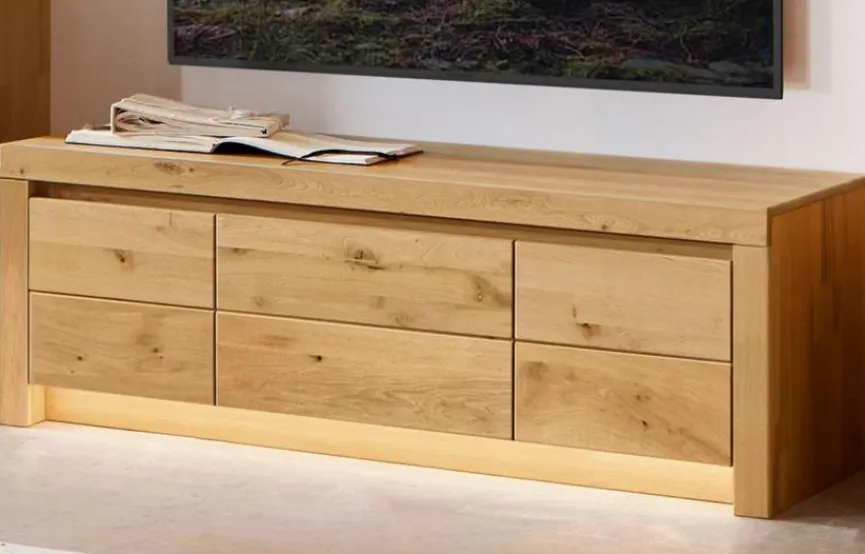 - Front und Korpus bestehen aus Holzwerkstoff (Massivholz) in Europäische Wildeiche, soft gebürstet