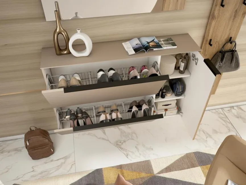 - Garderobe aus Hänge-Schuhschrank, Spiegel und Garderobenpaneel