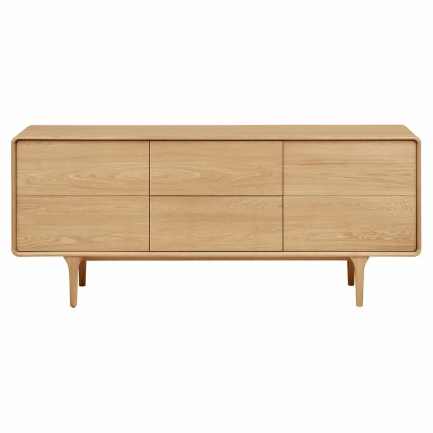 Das Sideboard Darwin der Marke DAHEIM lässt in Ihrem Zuhause ein einladendes und zugleich geschmackvolles Ambiente entstehen. Hierfür ist vor allem das massive Eichenholz verantwortlich, das dieser Kommode eine warme und attraktive Optik verleiht. Natürlich bietet Ihnen das exzellent verarbeitete Sideboard Darwin zudem stabile, beständige Qualität.