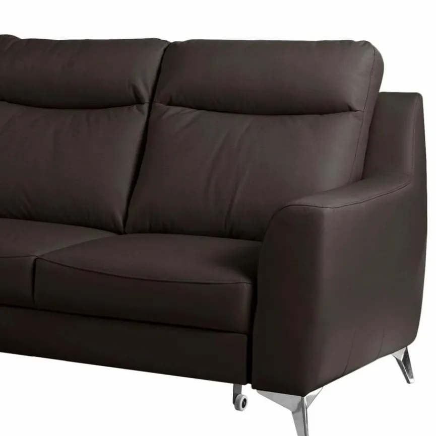 - Sitzbezug aus Leder (Madras) in dunkelbraun (510), Korpusbezug aus Lederoptik in dunkelbraun (510), Füße Metall verchromt