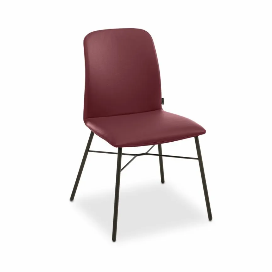 Das Label Musterring präsentiert Ihnen mit dem Stuhl Nando ein ausgesprochen elegantes Sitzmöbel. Vor allem die leicht geschwungene Lehne und der Bezug aus Echtleder kreieren einen geschmackvollen Look. Auch das eher filigran wirkende Gestell aus Metall verleiht dem Stuhl Nando eine überaus attraktive optische Note.
