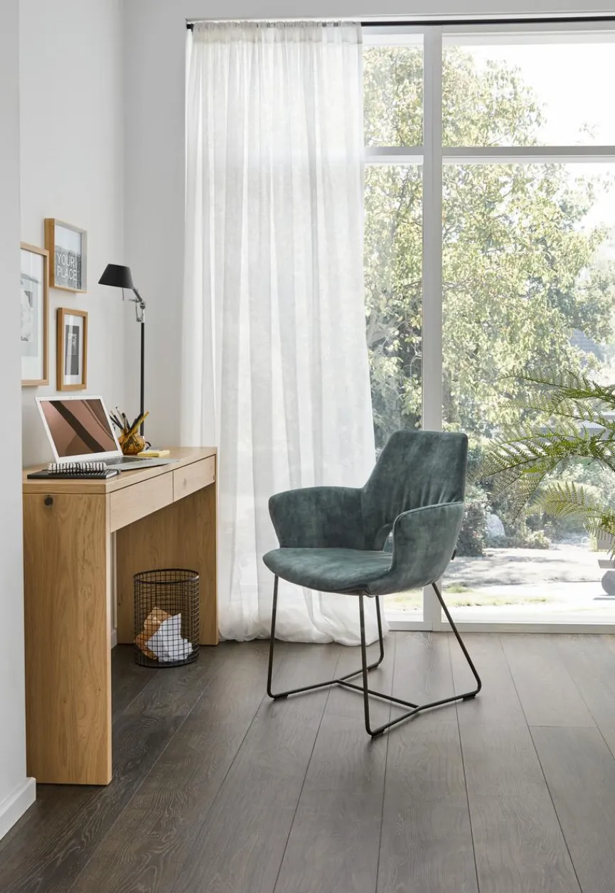 Dank der formschönen, gemütlichen Schale trägt der Stuhl Navarra aus dem Hause Musterring zum Komfort in Ihren Zimmern bei. Vor allem die charakteristische Öffnung am Rücken sorgt für einen echten Eyecatcher. Zudem garantiert Ihnen der Stuhl Navarra aufgrund des robusten Schlittengestells aus Metall eine hohe Stabilität.