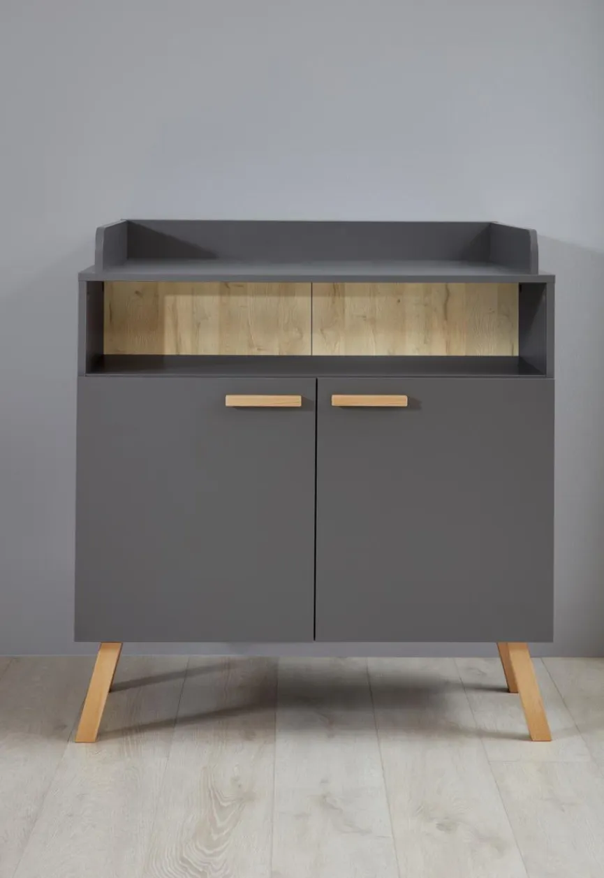 - Wickelkommode mit abnehmbarem Wickelaufsatz, 2 Türen, 1 Einlegeboden und 1 offenen Fach