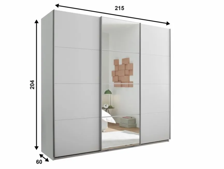 Wenn Sie die eleganten und puristischen Designs der Moderne lieben, dann ist der Schwebetürenschrank Carano 215×204 cm von Pol Power perfekt für Sie geeignet. Dieser schicke Kleiderschrank mit zentral platziertem Ganzkörperspiegel stellt in jeder Umgebung ein Highlight dar. Dank des großzügigen Innenraums bietet Ihnen der Schwebetürenschrank Carano 215×204 cm viel Platz für Kleidung, Bettwäsche und andere persönliche Dinge.
