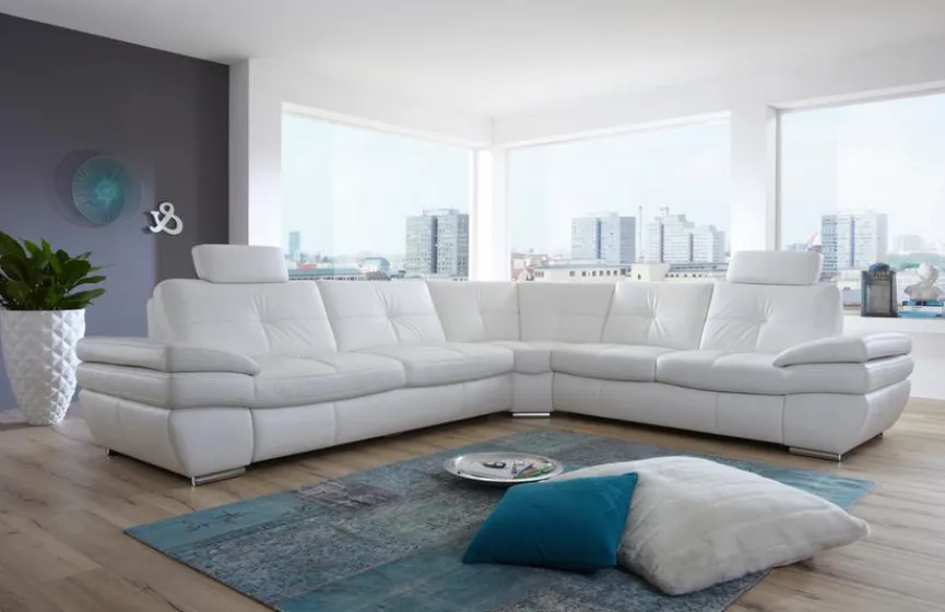 Farbe: ReinweißMaterial: LederGröße: Breite: 289,00 cm, Höhe: 85,00 cm, Tiefe: 330,00 cm