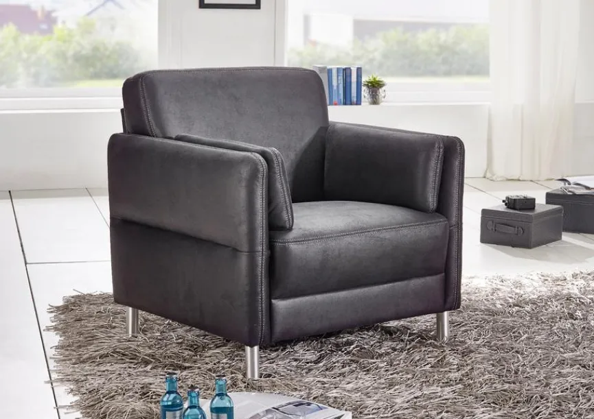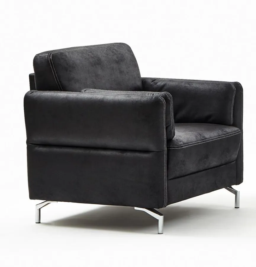 - Bezug aus Mikrofaser (898) in schwarz (06) mit Kontrastnaht in silber (F18), Füße Alu (F566)